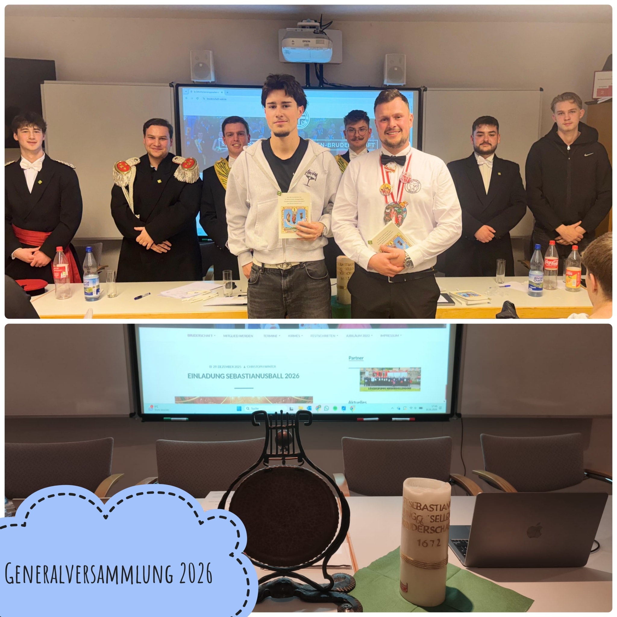 Freitagabend startete dann mit der Messe anlässlich unseres Patronatsfestes. Hier konnten wir uns besonders darüber freuen, dass neben unserem Präses Markus Hoitz auch unser Weihbischof Ansgar Puff an dieser Messe teilnahm. Danach trafen wir uns zur ordentlichen Generalversammlung für 2026. Hier konnten wir uns über die Aufnahme von zwei neuen Mitgliedern freuen.In diesem Jahr gab es zudem viele Posten neuzubesetzen. Die Wahlen gingen wie folgt aus: