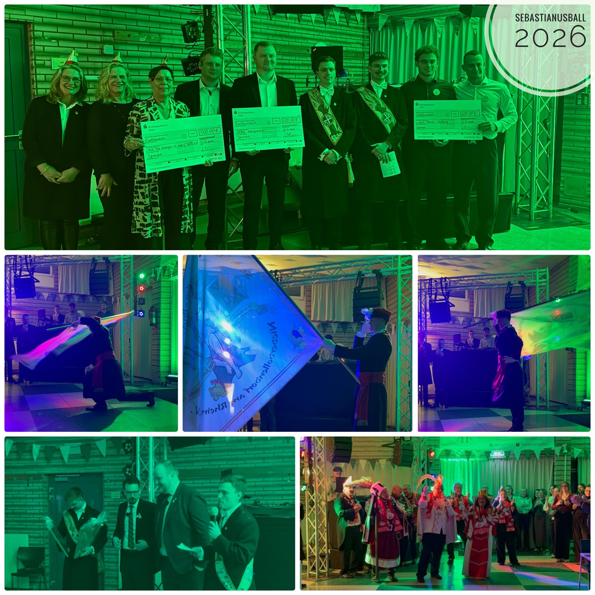 Nach dem Aufbau am Samstag startete dann Samstagabend der große Sebastianusball. Hier möchten wir uns bei allen Gästen bedanken, die da waren und den Abend unvergesslich gemacht haben. Zudem hat uns das amtierende Dreigestirn besucht und die Rheintöchter für einen spontanen Auftritt mitgebracht. Zum anderen haben die Brudermeister die Spenden der Benefizveranstaltungen übergeben. Hier sind insgesamt 1.500 € an Spenden zusammengekommen, die an insgesamt drei Organisationen verteilt wurden. Die folgenden drei Organisationen wurden berücksichtigt: